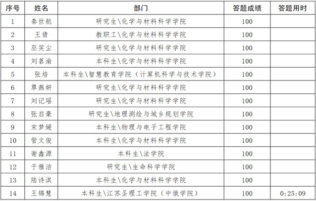 第四届实验室安全知识竞赛初赛—埃德伯格杯第九日答题成绩公布