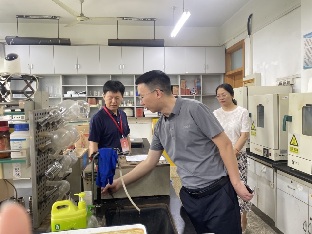 检查组先后对化学与材料科学学院、生命科学学院、物理与电子工程学院、机电工程学院、电气工程及自动化学院、地理测绘与城乡规划学院等重点单位实施实地检查,围绕责任体系与制度建设、人员培训与准入、环境卫生与设备安全、试剂耗材管理等方面进行了细致排查,发现个别实验室存在杂物堆积、通道堵塞、水龙头损坏、环境卫生不佳、个人防护不到位等现象。检查组要求相关单位立即整改、举一反三,坚决消除安全隐患。