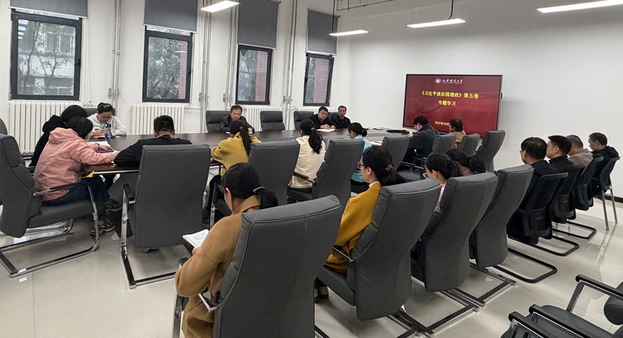 会议组织支部全体党员开展专题学习,宣传委员朱锐带领大家深入研读《习近平谈治国理政》第五卷第一章“以中国式现代化全面推进中华民族伟大复兴”,深刻体悟以习近平同志为核心的党中央在推进中国式现代化上的发展智慧。张强总结学习强调,全体党员要将学习成果转化为实际行动,立足岗位,在服务全校师生、实验室安全管理、校内外实验测试等工作中积极作为,为中国式现代化贡献力量。