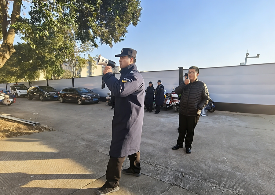 安保人员现场喊话