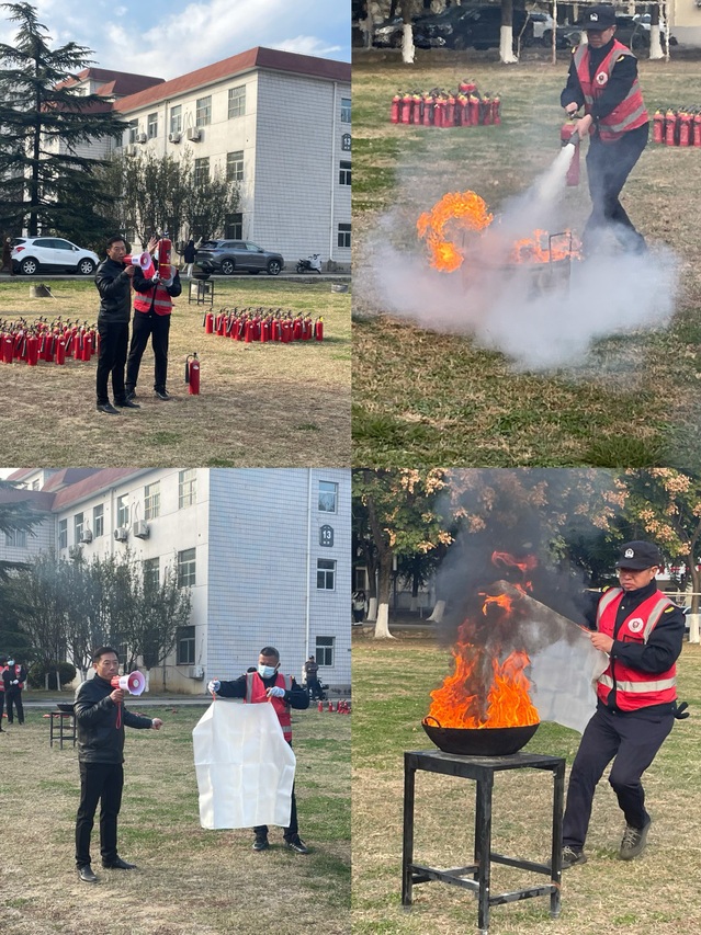 保卫处消防科科长赵远详细讲解了干粉灭火器、二氧化碳灭火器和灭火毯的结构组成、工作原理、使用方法以及进行油盆灭火过程中的注意事项,并进行了油盆灭火示范。随后,在工作人员的指导下,培训人员分别使用灭火器和灭火毯进行油盆灭火演练。灭火器灭火演练中,演练人员两人一组按照“一提、二拔、三压、四瞄”的灭火要领,站在火焰上风向进行实战灭火。油盆灭火演练中,演练人员双手握住两根黑色拉带,将灭火毯作为盾牌状拿在手中并轻轻的覆盖在火焰上,进行扑灭初起火灾的实战演练。在大家的积极参与、默契配合下,圆满完成了本次培训活动,达到了预期效果。